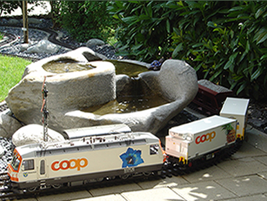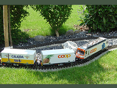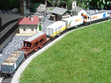 Die Werbung für Coop kommt beim Kurzzug mit der Coop-Lok so richtig zur Geltung. |