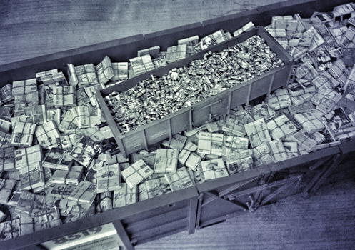 Gealterter H0-Güterwagen mit ca. 230 Zeitungsbündeln beladen.